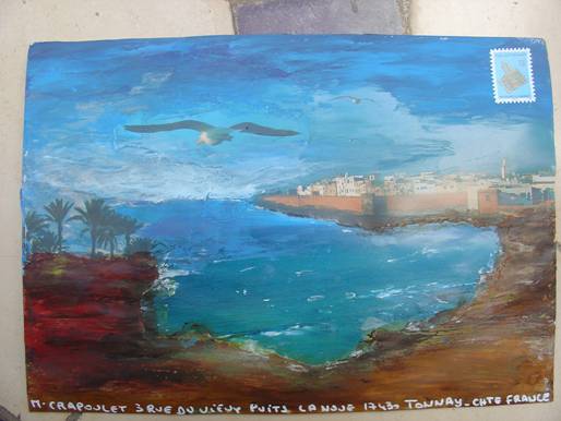 Atelier d’art postal au Riad : Peinture sur kraft grand format. Création