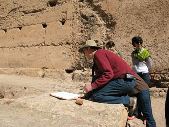 Peinture à la kasbah du Glaoui , chef d’œuvre d’architecture de terre reconnu par l’Unesco et en voie de sauvetage