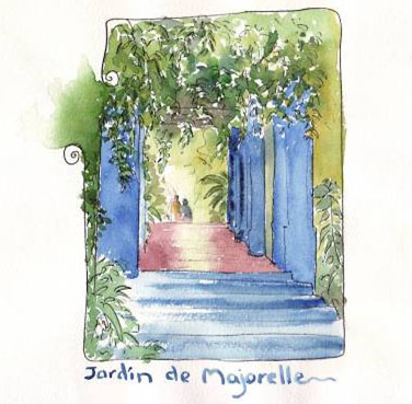 Après-midi : Flâneries et aquarelles le long des remparts, dans le quartier Bab Agnaou et près de la mosquée du XIIe siècle d’El-Mansour (aussi appelée Kasbah).