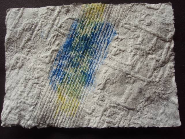 avec la pulpe de chiffons broyés ,des pigments et diverses techniques d'inclusion