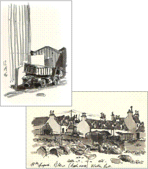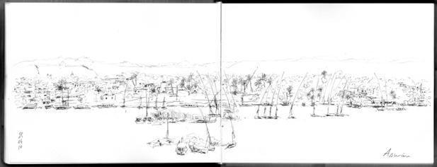quelques années… Les choses se croisent, les lieux passent d’un carnet à l’autre. Les dessins, sous formes de croquis plus ou moins rapides, toujours réalisés sur le vif, re- lient ainsi sans ruptures les espaces parcou- rus, les moments vécus, sans dissocier les voyages de la vie de tous les jours. Juste au- tour de soi, ou un peu plus loin, fouiller les ombres, intercepter la lumière, rechercher de l’insignifiant dans les recoins, c’est trouver de la poésie là ou elle paraissait inexistante, mais aussi découvrir du banal derrière la majesté, de la douceur autour de la violence, de la sub- tilité au sein de l’ingrat en s’aventurant sur le fil de ces fragiles limites, en faisant de l’ordi- naire une mise en scène…