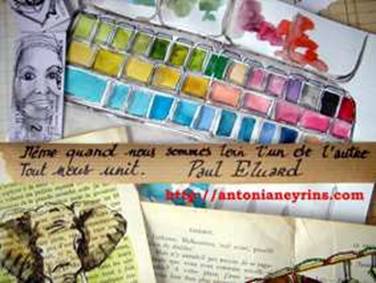 Carpe diem, goût des voyages et de la liberté sont les trois couleurs primaires de la palette d’Antonia, 2ème prix du public à la Biennale du carnet de voyage de Clermont Ferrand en 2005 (3ème prix en 2003 et 2004) et premier prix du roman jeunesse au salon du livre insulaire d’Ouessant en 2010 (Lettres de Guadeloupe.