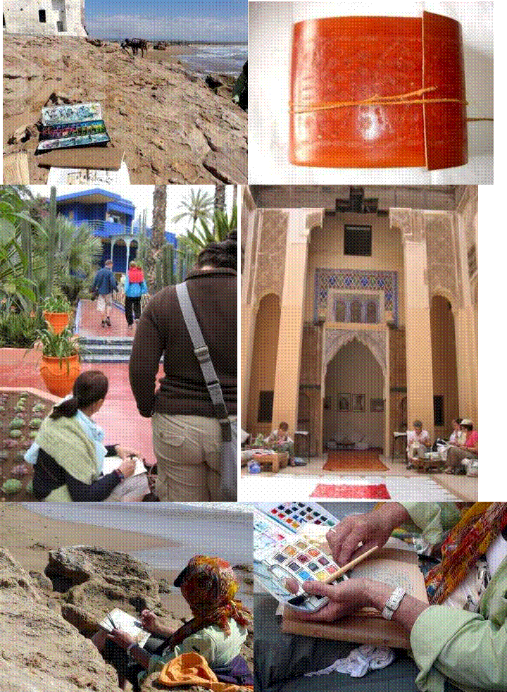 Dessin et aquarelle, puis découverte des souks (possibilité d’acheter un carnet en cuir)