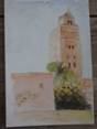 9:00 : on fait un premier croquis sur place au riad : possibilité de peindre les arbres , les plantes et la fontaine du patio , les boiseries finement travaillées , les lanternes , les instruments de musique …., et puis on sort dehors,