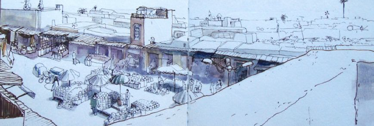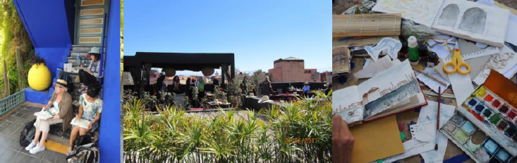 9h00 – 11h00 : croquis et pochades au Riad : entraînement au dessin rapide.