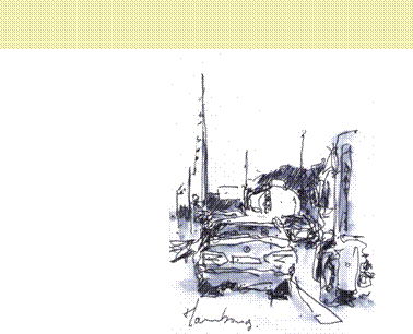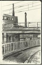 quelques années… Les choses se croisent, les lieux passent d’un carnet à l’autre. Les dessins, sous formes de croquis plus ou moins rapides, toujours réalisés sur le vif, re- lient ainsi sans ruptures les espaces parcou- rus, les moments vécus, sans dissocier les voyages de la vie de tous les jours. Juste au- tour de soi, ou un peu plus loin, fouiller les ombres, intercepter la lumière, rechercher de l’insignifiant dans les recoins, c’est trouver de la poésie là ou elle paraissait inexistante, mais aussi découvrir du banal derrière la majesté, de la douceur autour de la violence, de la sub- tilité au sein de l’ingrat en s’aventurant sur le fil de ces fragiles limites, en faisant de l’ordi- naire une mise en scène…