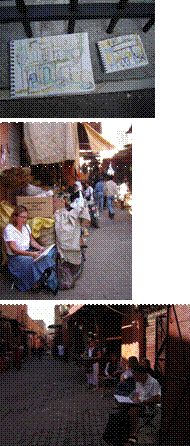 Option possible l'après-midi : déjeuner au Café des Epices, ou au Souk Café ; dessins depuis la terrasse du Café de France, place Jemaa El Fna.