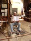 9:00 : on fait un premier croquis sur place au riad : possibilité de peindre les arbres , les plantes et la fontaine du patio , les boiseries finement travaillées , les lanternes , les instruments de musique …., et puis on sort dehors,