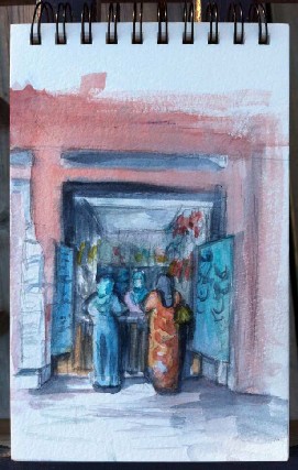 La Messe ? Non… Croquis aux caravansérails, mais lequel ? Ils sont tous beaux ! On cadre, on croque, en bref on se régale…