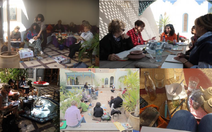 Journée type : Elle se déroule en deux ou trois sessions chaque jour (4 à 5 heures de stage par jour) . Nous prendrons le petit déjeuner vers 8h15. Une session après le petit déjeuner de 9h00 à 11h00 pendant laquelle nous ferons des exercices d'entraînement (cadrage, dessin rapide, modèle vivant, perspective, pochades en noir et blanc, interprétation d'un croquis en pochade sur bois et exercices à la demande). Le Riad offre plusieurs lieux pour ces exercices du matin. Une matinée sera réservée au Jardin Majorelle qui offre une multitude de vues et d'ambiances à dessiner.