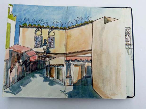 Marrakech du carnet de voyage à la toile (réalisation d’un carnet de voyage à l’aquarelle, dont l’aboutissement sera une toile à l’acrylique)